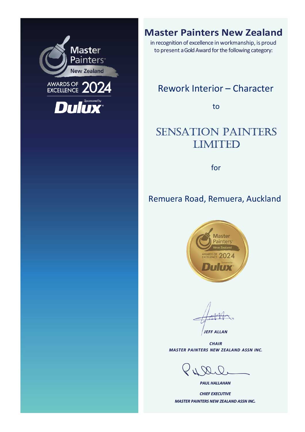 Once again, the team Sensation Painters entered our work in the Master Painters Association Awards 2024. The Master Painters Association Awards Conference was held in Fiji this year, although we didn’t attend.